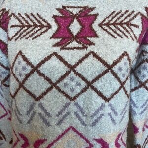 Lou & Grey Sweater Size XS Mock Neck Gray Fair Isle Tunic Winter Comfy Cozy