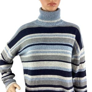 Lou & Grey Sweater Size XXS Blue Stripe Pullover Turtleneck