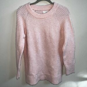 This Lou & Grey sweater features a light pink color, with a hint of peach, a Waffle like knit Pullover styling