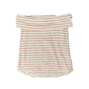 LOU & GREY TOP WOMENS S SMALL CREAM RED STRIPED OFF THE SHOULDER STRETCH