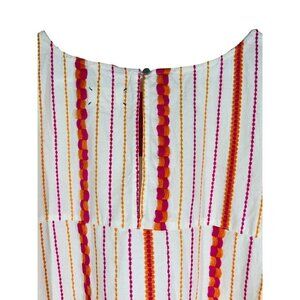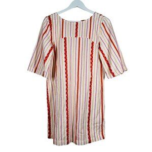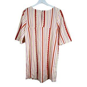 Lou & Grey Tunic Dress Size XS Embroidered Colorful Striped 3/4 Sleeve Short Back Button Pink Orange Off White