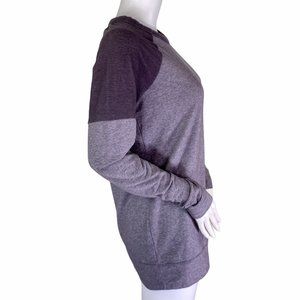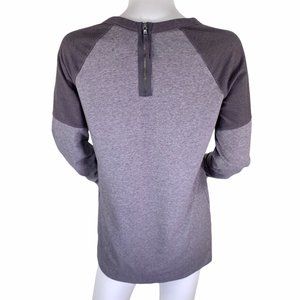 Lou & Grey Two Tone Heather Purple Exposed Back Zip Long Raglan Sleeve Stretch Top XS