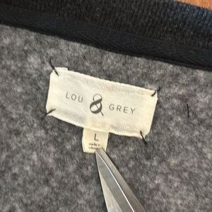 Lou & Grey Two Tone Marled Charcoal Gray Sweater - Size Large. Approximate Measurements: Rear length 26”; sleeves 25.5”; armpit to armpit 23”. Cotton/Polyester.