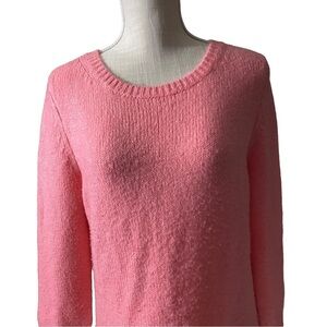 Lou & Grey Vibrant Peach Knit Stretch Ribbed Cuff & Waist Crew Neck Sweater Lrg