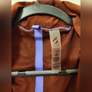 Stylish burgundy windbreaker with blue trim. Features front pockets and a zip closure. Ideal for casual outings. Tuck away the hood in a zippered area. Worn once or twice. EUC. Loft Brand.