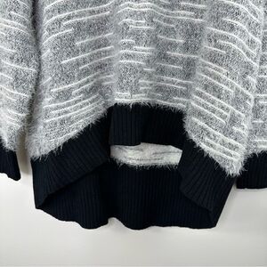 Lou & Grey Womens Eyelash Fuzzy Sweater Crewneck Long Sleeve Black White Sz L