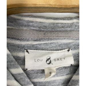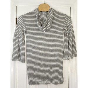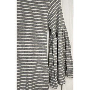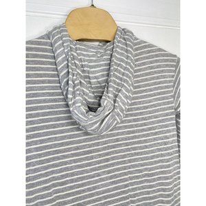 Lou & Grey Women’s Hooded Bell Sleeve Dress Grey White Stripes Small