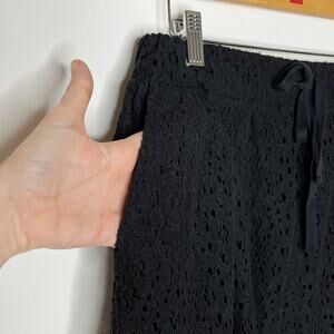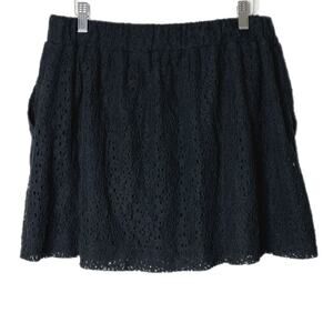 Lou & Grey Women's Lace Mini Skirt Size S Black Drawstring Waist Pockets Lined