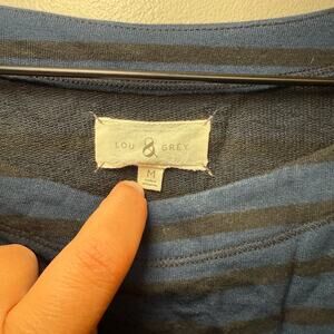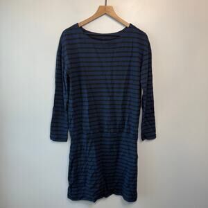 Lou & Grey Women's Long Sleeve Casual Dress Navy Blue Black Striped Size Medium