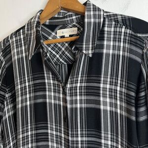 Lou & Grey Women's Plaid Shirtdress Size S Black & White Long Sleeve Button Up