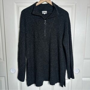 Lou & Grey Women’s XL Dark Fuzzy Ribbed Quarter Zip Tunic Sweater Mock Autumn