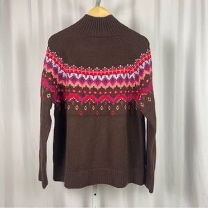 Lou & Grey XL Wool Blend Fair Isle Turtleneck Sweater Chunky Warm Retro