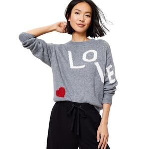 Stay cozy and cute in this Lou & Grey for LOFT soft knit sweater. This heathered grey pullover features a bold ivory "LOVE" graphic across the front with a charming red heart detail near the hem. A relaxed, slightly slouchy fit makes it perfect for lounging, casual outings, or layering up on cooler days.
