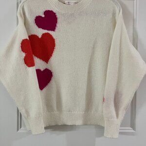 Lou & Grey for LOFT dark pink and orange heart sweater, size Medium, nylon, acrylic and wool. Long sleeve crew neck relaxed fit. Gently used. So cute for Valentine's Day!