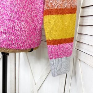 Lou & Grey for Loft Multi Stripe Chunky Knit Sweater Gray Yellow Pink Small