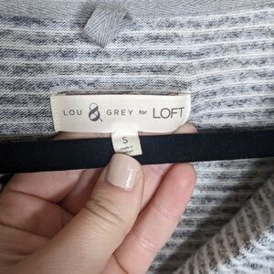 Lou & Grey for Loft Split Neck V-Neck Hoodie Soft Gray and White Stripes Size Sm