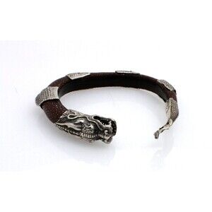 Lou Guerein Silver 925 Dragon and Stingray Skin Cuff Bracelet Bangle