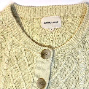 LouLou Studio scoop neck cable-knit cardigan, Size Medium.