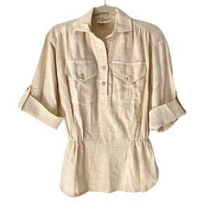 Lou Louis California 70s Vintage Ivory Cream Tweed Natural Hippie Blouse S/M
