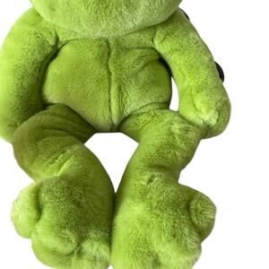 This is a rare Lou Rankin Collection “Happy Herbert” green frog plush by Applause. It measures approximately 13 inches tall and features ultra-soft bright green fur, a charming face with embroidered detail, and plush limbs. Designed by sculptor Lou Rankin and part of his expressive animal series, this frog is a collectible item loved for its tender-eyed expression.