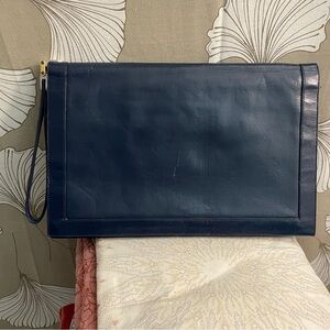 Lou Taylor Navy Clutch Wristlet with Swivel Interior Gold Mirror Italy Vintage