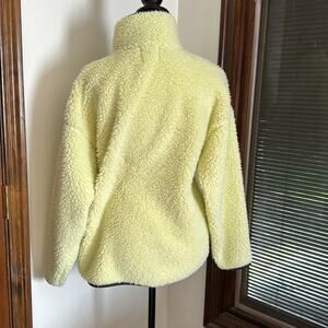 Described as luxuriously plush sherpa (and it is), this is a super soft pull over and it keeps you warm! This is oversized, in great used condition, no flaws or damage to note.