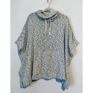 Lou and Grey LOFT Poncho Womens Medium Gray Drawstring Cowl Neck Oversized Boho