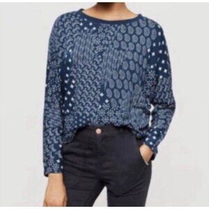 Lou and Grey Top Womens Medium Blue Floral Patchwork Cropped Stretchy Knit