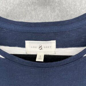 Lou and Grey Womens Oversized Knit Shirt Dress Size Small Navy Blue Striped NWOT