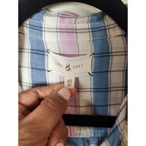 Lou and Grey Womens Sz XS Blue White Pink Plaid Long Sleeve Button Up Shirt Top
