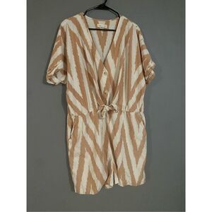 Lou and Grey for Loft Brown Sugar Cream Ikat Self Tie Romper Womens Size XL
