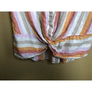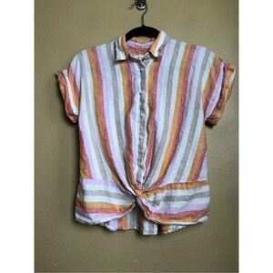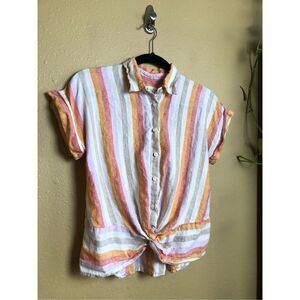 Lou & grey Linen Top Blouse Orange Stripe Short Sleeve Collared Size XS