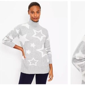Lou & grey starstruck mock neck turtleneck star sweater in pebble grey heather M
