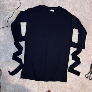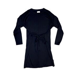 Loungewear. Sweater dress with tie waist. Comfortable dress. High neckline. Long sleeve. Soft fabric. Loose fit. Adjustable waist. Can be tied along front or back. Great to wear over leggings. Casual wear. Meant to fit very oversized and relaxed.
