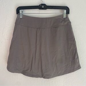This gray mini skirt boasts a skater style, ideal for athletic and casual settings. Its structured design and smooth waistband ensure a comfortable and flattering fit, making it a versatile piece for any wardrobe.