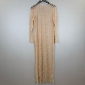 Louatui Women's Mesh Pearl Cover Up See Through Long Sleeve Dress Summer Swimwea