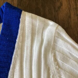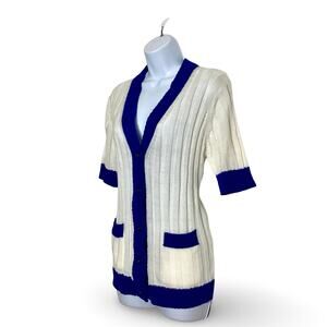 White short sleeve cardigan with blue trim by Loubella in good preowned condition. No flaws.
