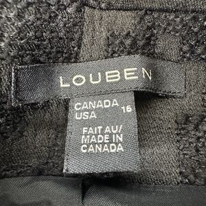 Louben Houndstooth Jacket Sz 16 Black Wool Blend Open Front Old Money Career