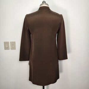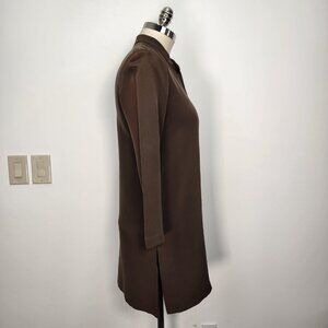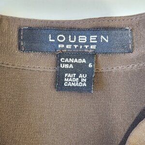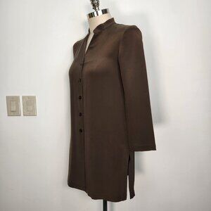 Louben Petite Button Front Silk Tunic Blouse 6P Brown Vintage Mandarin Collar