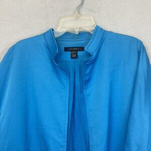 Louben Silk Blend Blazer Jacket Womens Size 6 Blue Open Front 3/4 Sleeve Canada
