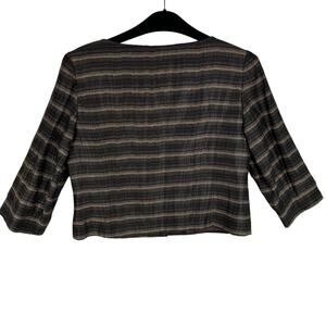 Louben Vintage Brown Striped 3/4 Sleeve Cropped Linen Blend Button Up Blazer 4