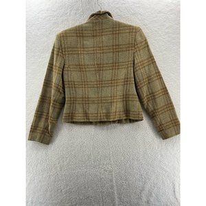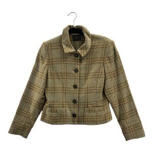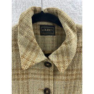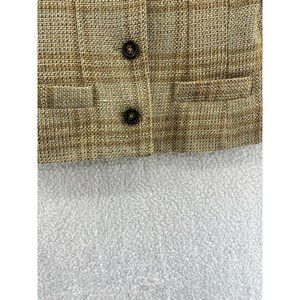 Louben Womens Jacket Coat Brown Glen Check Waist Length Buttons Pockets Collar M