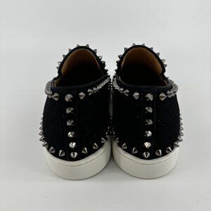 Louboutin Black GLITTER Slip On's with Silver Studs - Size 39