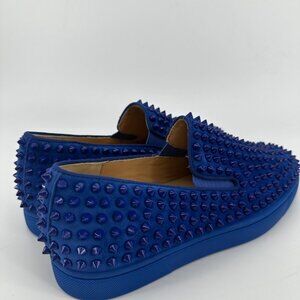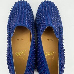 Louboutin Blue Suede Roller Boat Spiked Flats - Size 39