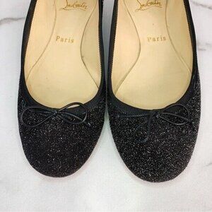 ❤️Lovely Christian Louboutin Massine Crosta Black Glitter Studded Comete Leather Ballet Flats