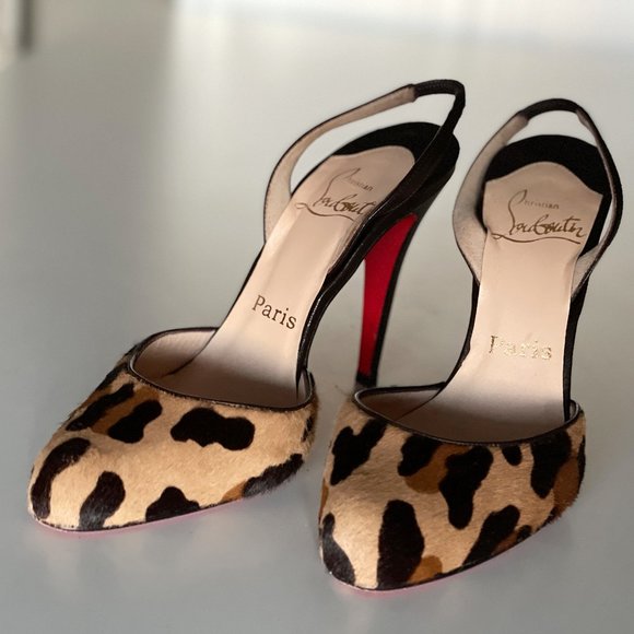 Beautiful, rare Louboutin heels. CHRISTIAN LOUBOUTIN – 36.5 – DICKENSERA Brown/Leopard Pony Hair Slingback Heels