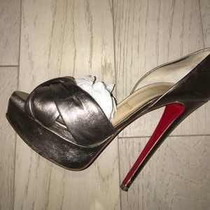 Christian Louboutins: gold, open toes, I have box and dust bag. Please note these at size 38. And it is 5 inch heels. Please know your size before purchasing. There are markings on the heels, please check photos and ask questions