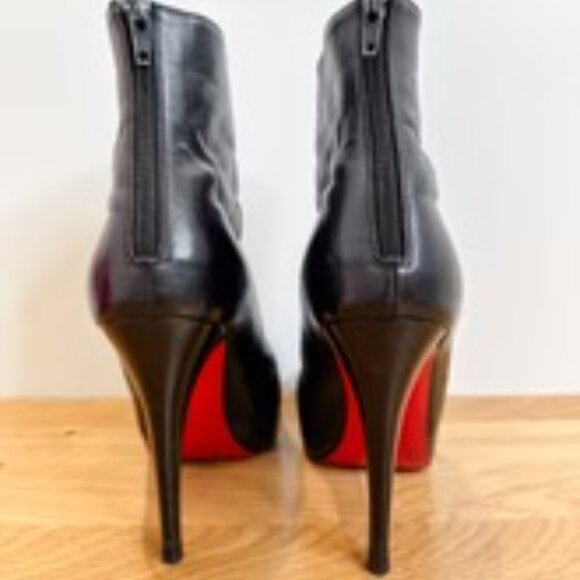 Christian Loubutin Leather Stiletto Booties. Recently resoled and touched up by the best cobbler in town, and ready for your next holiday event.