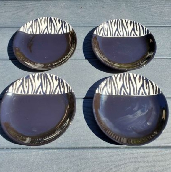Bundle: Loucarte Black White Zebra Print Salad Plates Ceramic Microwave Dishwasher Safe Kitchen Safari Set of 4