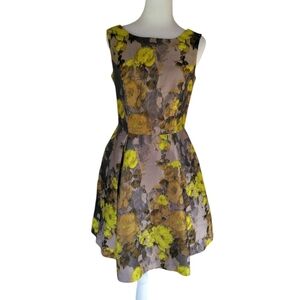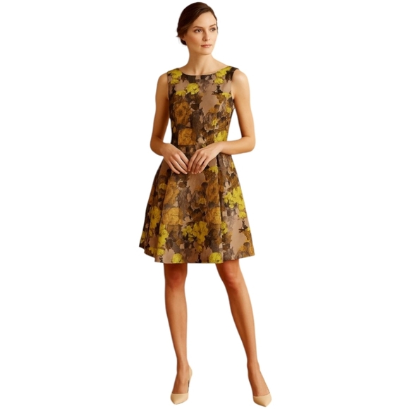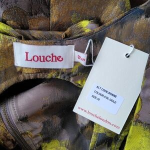 Louche London Gold Abstract Floral Cut Out Back Midi Dress Size Small NWT